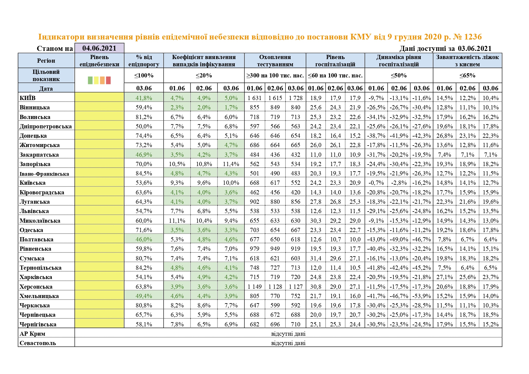 Отметим, что "зеленый" уровень эпидопасности устанавливается одновременно на всей территории Украины, если: