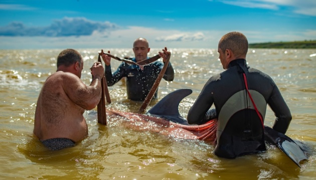 Под Херсоном спасли обессиленного дельфина, которого выбросило штормом на мель. Фото и видео