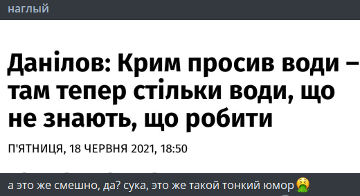 Издеваться над проблемами с водой в Крыму, когда Украина ее же и перекрыла, да еще и на фоне погодной катастрофы – это вряд ли уровень госчиновника. Даже с поправкой на то, что это сказал Алексей Данилов – автор многих спорных высказываний.