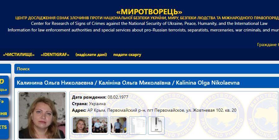 Ольга Калинина из Крыма. Фото: myrotvorets.center