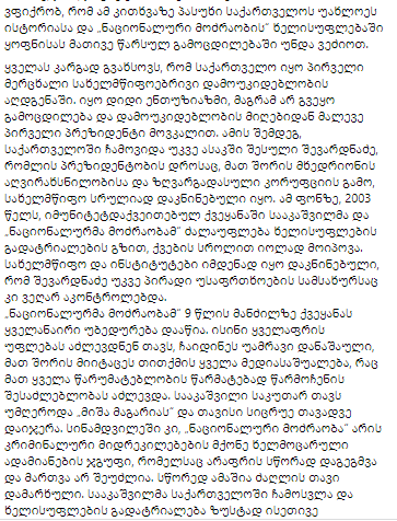 "Наиболее логичной можно считать версию, что Саакашвили прибыл в Грузию не с намерением попасть в тюрьму, а с большой надеждой на государственный переворот. Я также хотел бы сказать общественности, что революционные замыслы Саакашвили во всех случаях были обречены на провал.