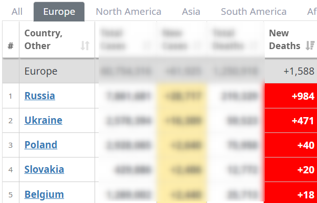 По смертности ситуация и вовсе скатилась: вчерашний день стал почти антирекордным: 471 случай (на десять человек больше было лишь 7 апреля). И пока мы на втором месте в Европе после России.