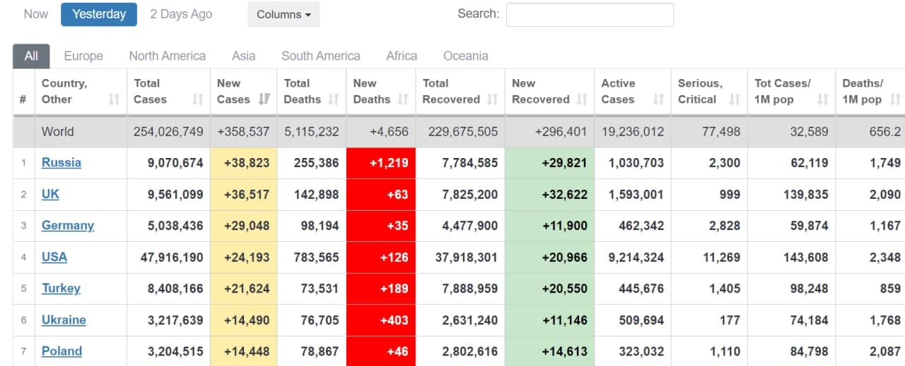Также Украина стала второй по показателю смертности от коронавируса и среди стран Европы. Об этом свидетельствуют данные Worldmeters.