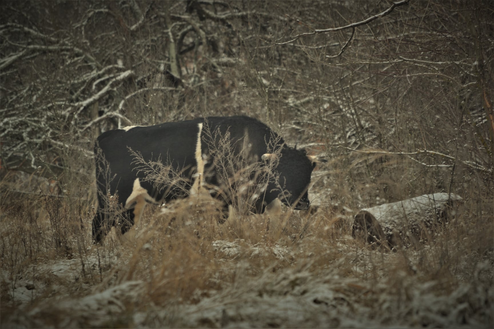 Скриншот из Фейсбука Чернобыльского заповедникаОдна из одичавших коров осеньюСтавшая дикой домашняя короваЧасть стада коровКоровы в зимнем лесу