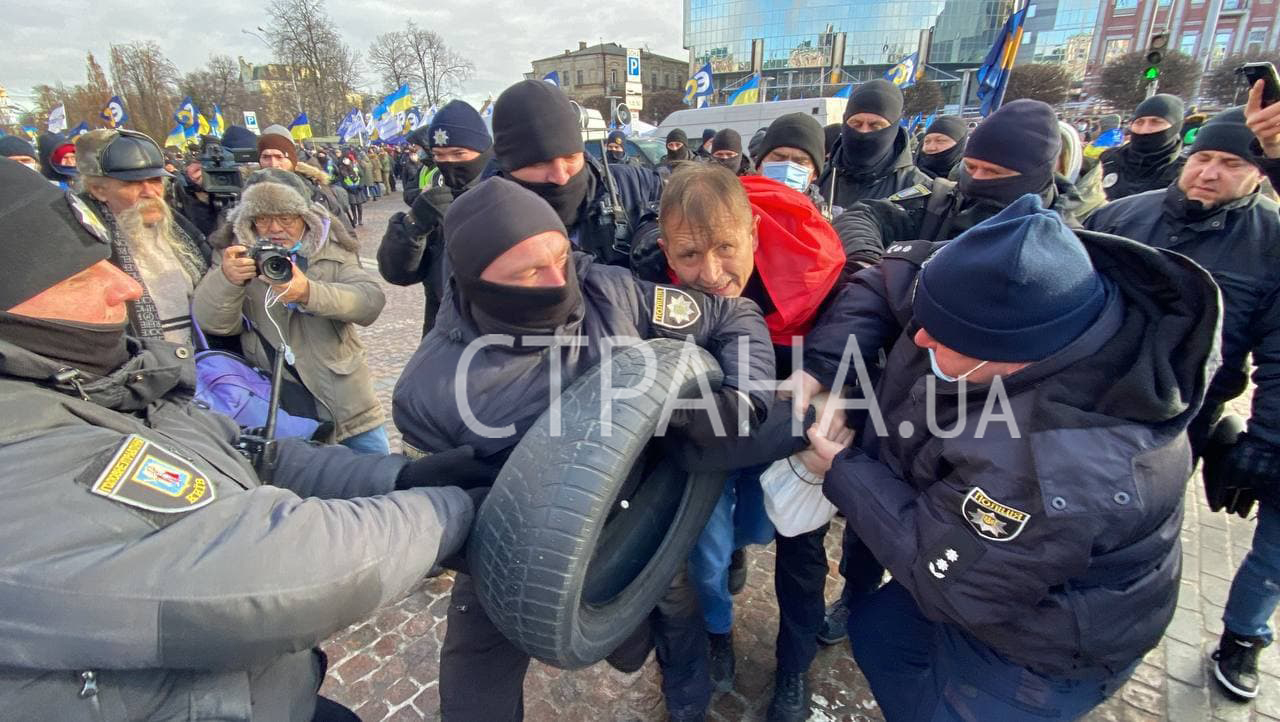 По словам уполномоченной "Солідарної справи громад" Антонины Бузило, около сотни полицейских спровоцировали столкновения, забрали бочки, где хотели распалить костер, дрова и часть буржуек, барабаны, бутерброды и термосы с горячим чаем, которыми люди планировали согреваться.