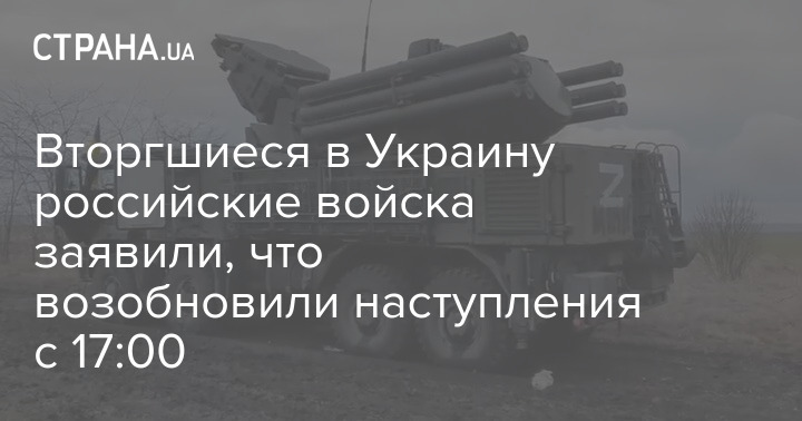 Вторгшиеся в Украину российские войска заявили, что возобновили наступления с 17:00
