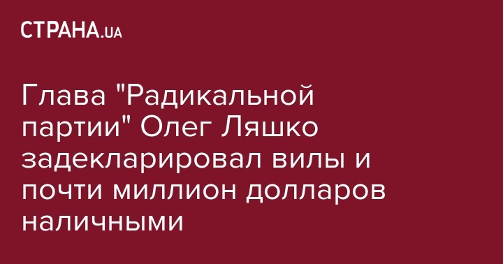 Глава "Радикальной партии" Олег Ляшко задекларировал вилы и почти миллион долларов наличными