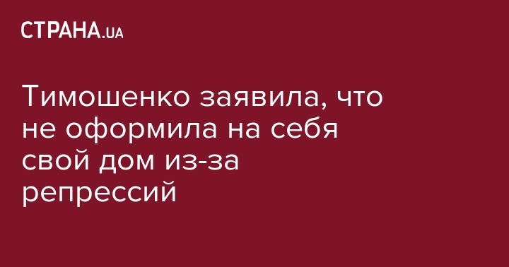 Тимошенко заявила, что не оформила на себя свой дом из-за репрессий
