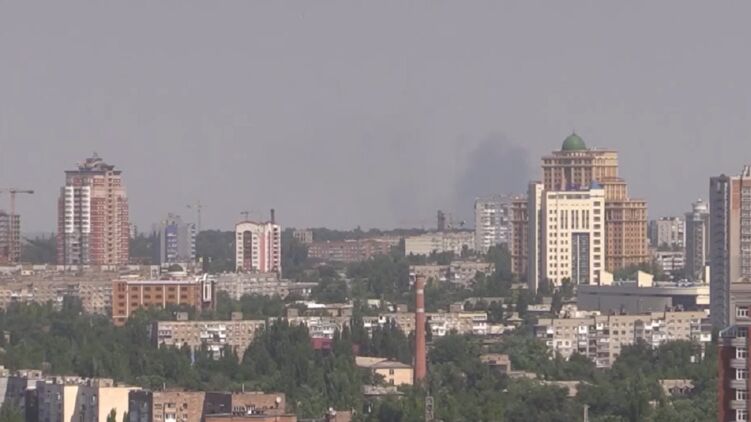 Два района Донецка попали под обстрел. В городе виден дым от пожаров. Видео