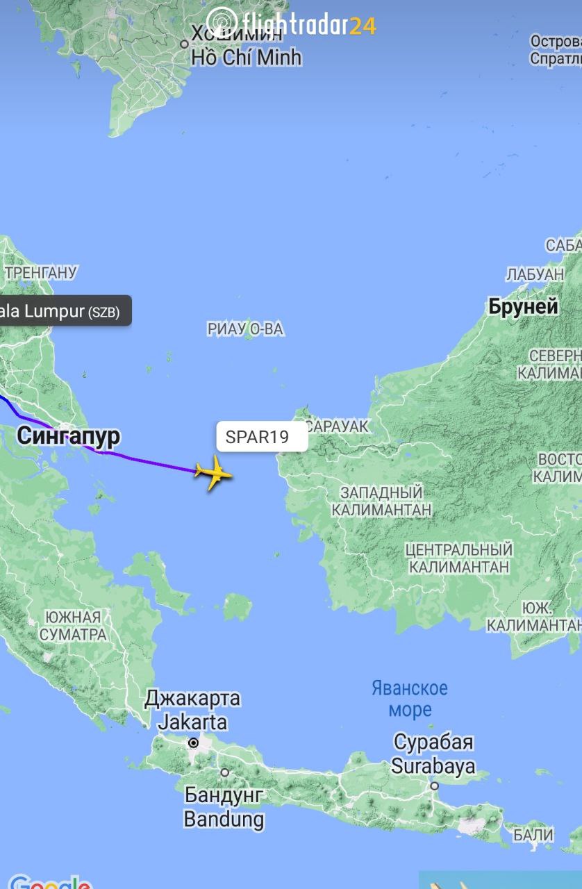 Тем временем сервисы, позволяющие наблюдать за передвижениями воздушных судов, сообщают, что самолёт Пелоси уже покинул Малайзию и приближается к острову Борнео.