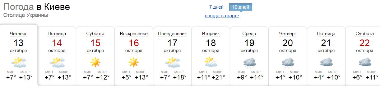 Прогноз погоды на ближайшие 10 дней от сайта Sinoptik.ua