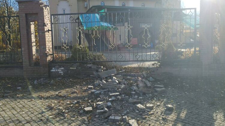 На фото можно заметить сильные разрушения ограждения возле здания мечети.