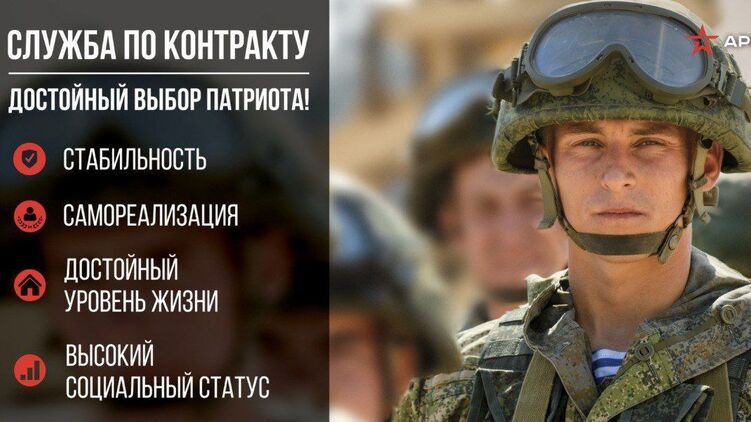 "Служба по контракту - достойный выбор. Поступая на военную службу по контракту, вы выбираете стабильность, широкие возможности для самореализации, достойный уровень жизни и высокий социальный статус", - говорится в одном из подобных постов.