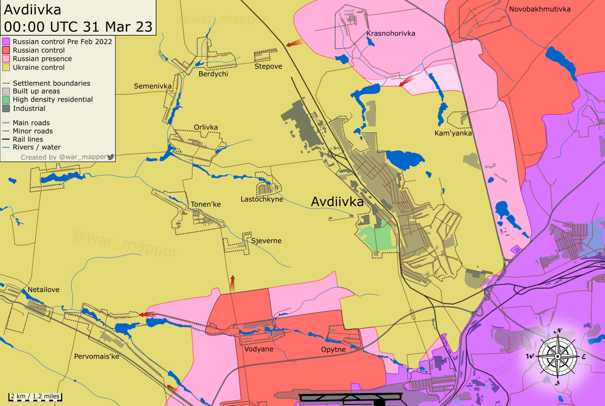 Также противник ведет наступательные действия в районе Орехово-Васильевки к северо-западу от Бахмута. Мы уже рассказывали, что эти бои выглядят как самостоятельные (безотносительно ситуации в самом Бахмуте) операции с прицелом на районы Лимана и Северска.