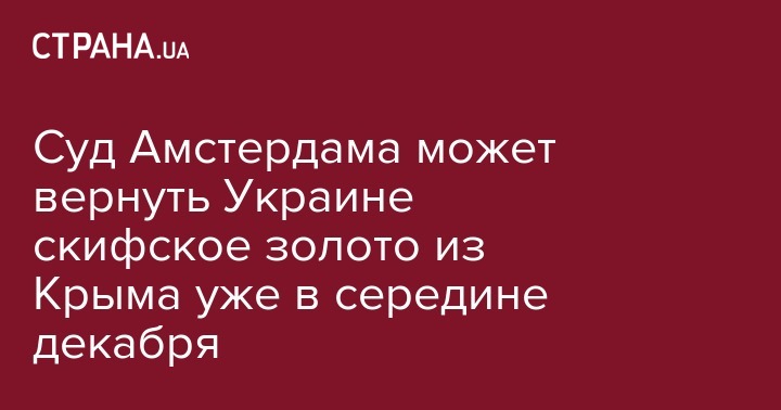 Сегодня, 1 декабря, первый замминистра культуры Украины Светлана Фоменко заявила, что первое решение Окружного суда Амстердама по делу о возврате Украине хранящихся в музее Алларда Пирсона экспонатов крымских музеев ("скифское золото"), будет вынесено 14 декабря, передает "Интерфакс-Украина".