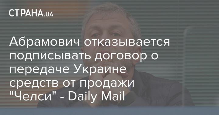 Бывший владелец английского "Челси" российский бизнесмен Роман Абрамович отказывается подписывать договор о передаче Украине средств от продажи футбольного клуба.