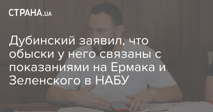 Дубинский заявил, что обыски у него связаны с показаниями на Ермака и Зеленского в НАБУ