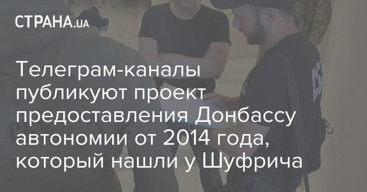 Телеграм-каналы публикуют проект предоставления Донбассу автономии, датированный июлем 2014 года, за подписью Медведчука и Шуфрича, который, как утверждается, нашла СБУ во время обыска у Шуфрича.