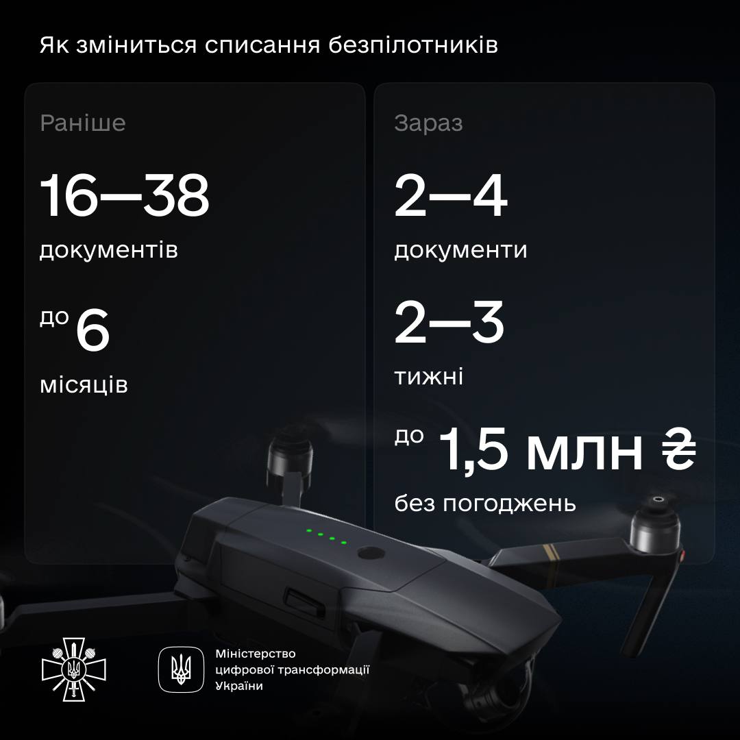 - командиры рот, батальонов и бригад могут списывать уничтоженные БПЛА стоимостью до 1,5 млн грн без согласования с высшим руководством;
