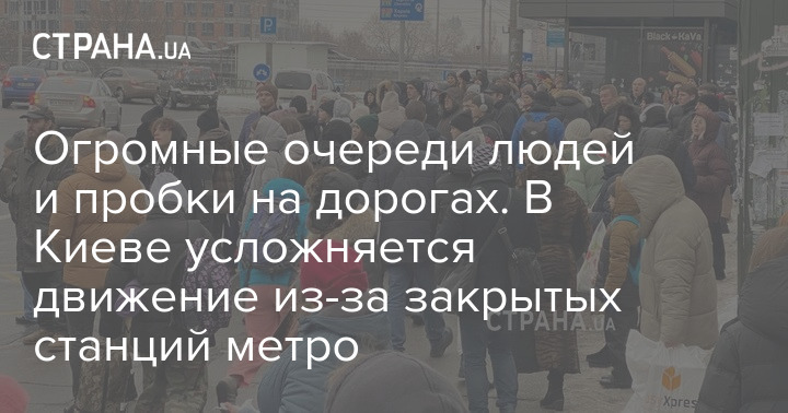 На автобусных остановках Киева возле станций метро, которые не работают со вчерашнего дня, появились огромные очереди людей, которые ждут общественный транспорт.