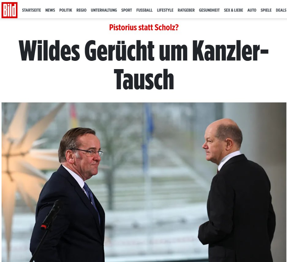 По данным журналистов, Шольц может досрочно уйти в отставку в 2024 году, а его заменит министр обороны Борис Писториус, недавно возглавивший рейтинг самых популярных немецких политиков.