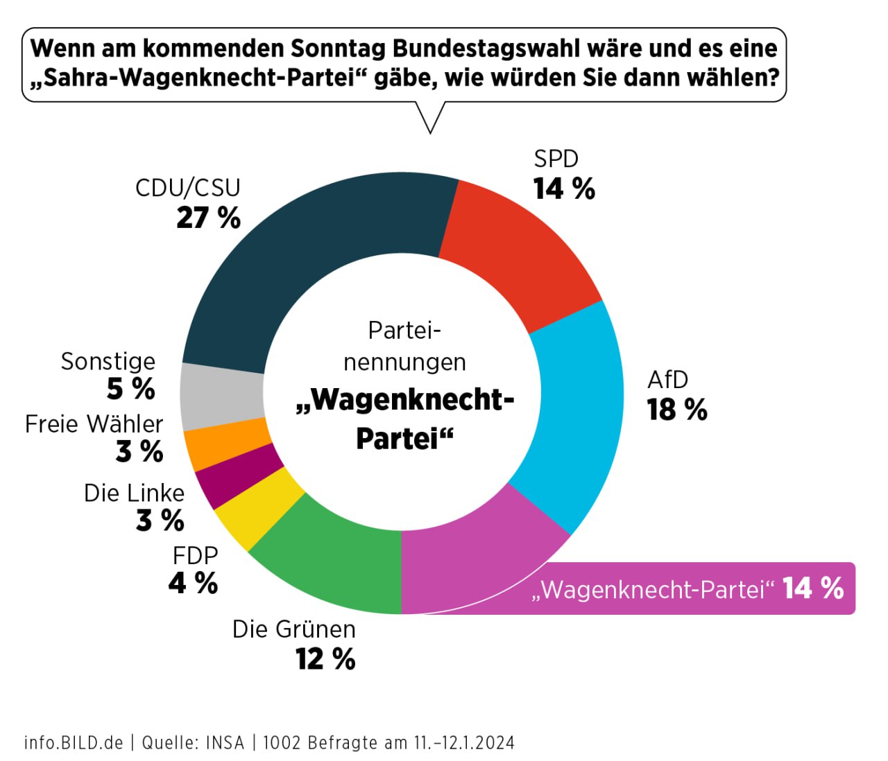 Недавно созданная партия "Союз Сары Вагенкнехт", выступающая за прекращение военной помощи Украине, сравнялась по популярности с правящими партиями Германии.