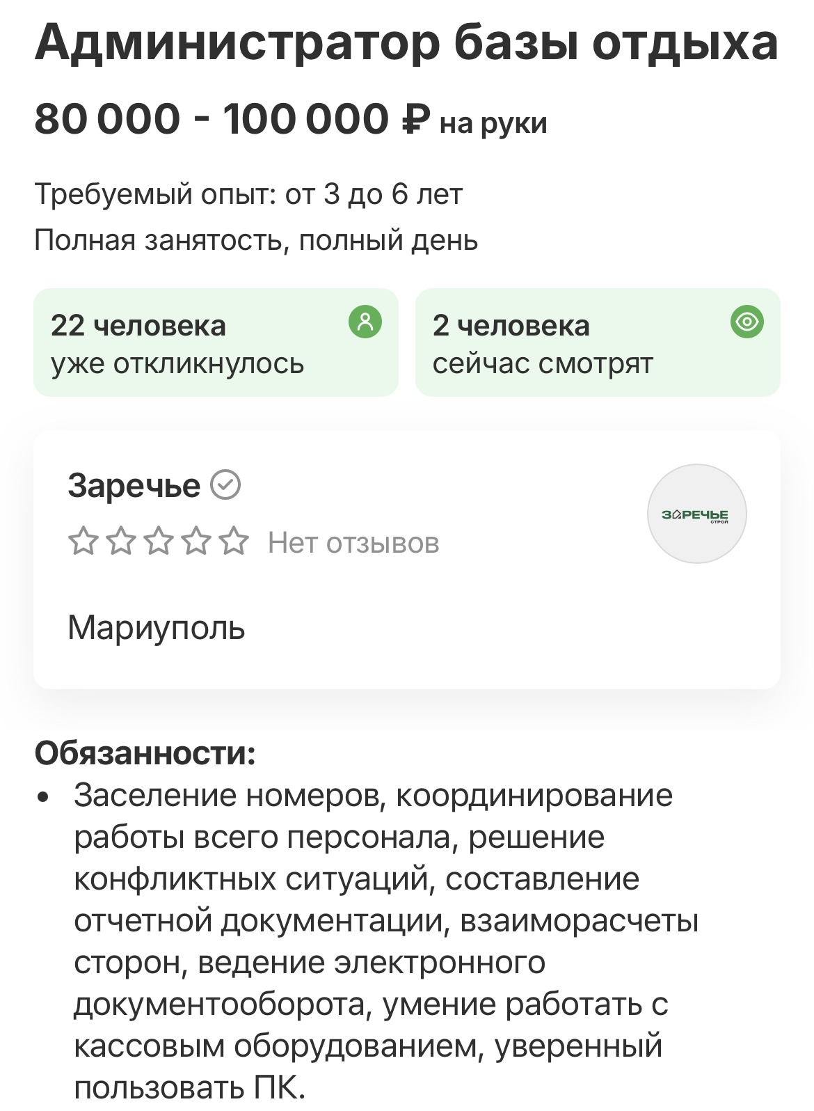 Руководителю пляжа предлагают от 75 000 рублей до вычета налогов (809 долларов). Администратору базы отдыха предлагают от 80 000 рублей на руки (863 доллара).