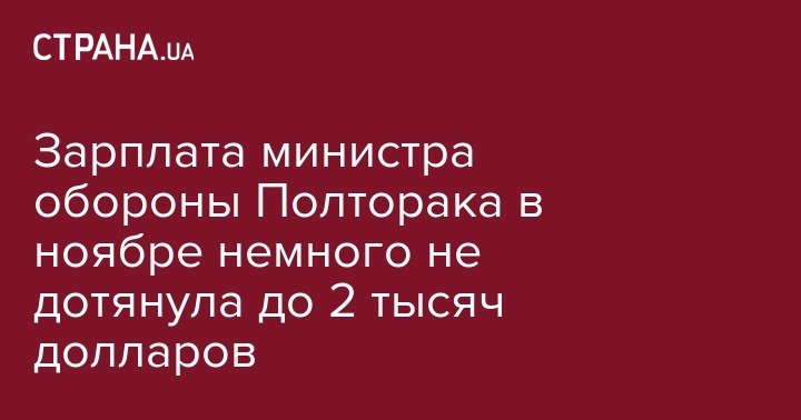 Зарплата министра обороны Полторака в ноябре немного не дотянула до 2 тысяч долларов