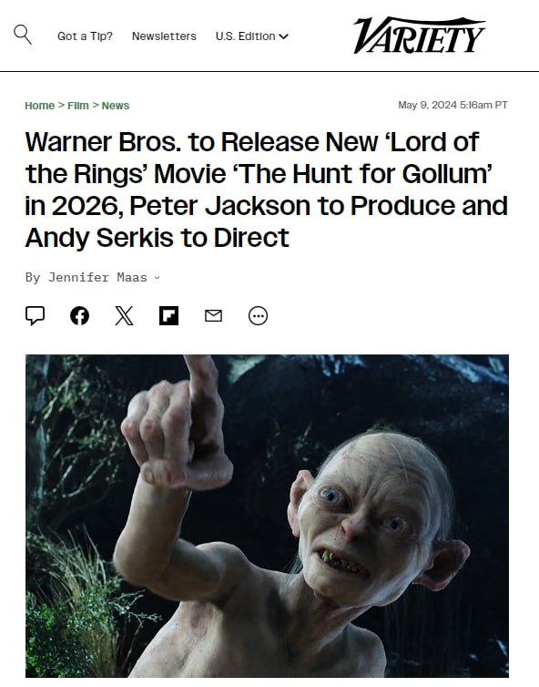 История Голлума. Кинокомпания Warner выпустит новый фильм по мотивам "Властелина колец"