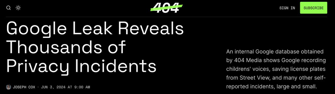 Масштабный слив данных Google показал тысячи нарушений конфиденциальности пользователей - от слежки за передвижениями до записи детских голосов и хранения номерных знаков.