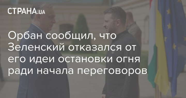 Премьер-министр Венгрии Виктор Орбан сообщил, что президент Украины Владимир Зеленский отверг его предложенное прекратить огонь для начала мирных переговоров с Россией.