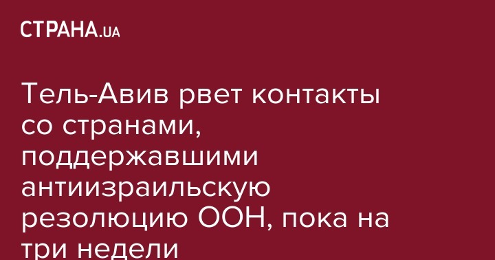 Тель-Авив рвет контакты со странами, поддержавшими антиизраильскую резолюцию ООН, пока на три недели