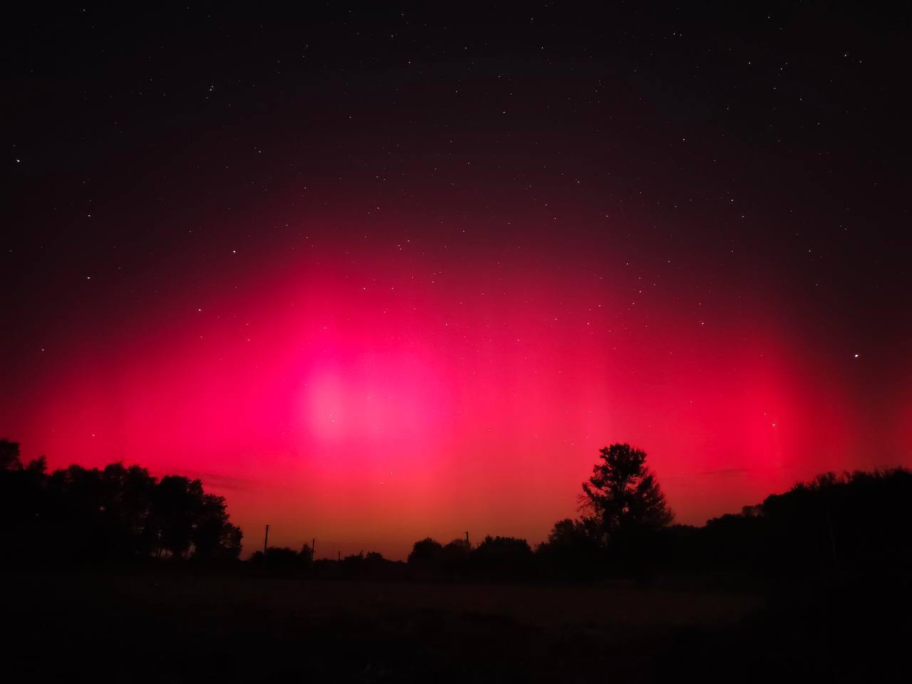 Розовое зарево над страной. Появились фото "северного сияния" в небе над Украиной