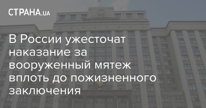 Госдума РФ приняла в первом чтении законопроект об усилении ответственности вплоть до пожизненного заключения за организацию вооруженного мятежа и участие в нем.