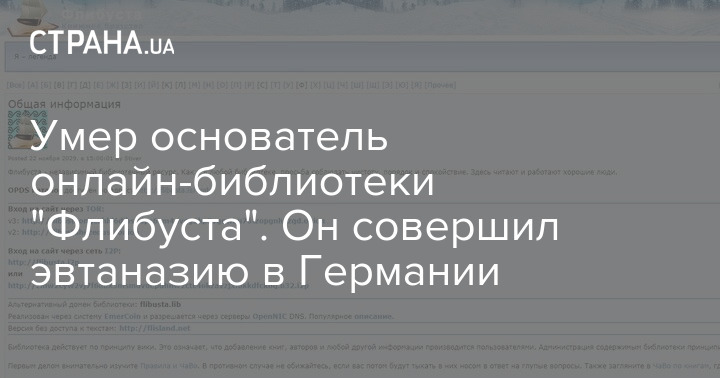 Умер основатель онлайн-библиотеки "Флибуста". Он совершил эвтаназию в Германии