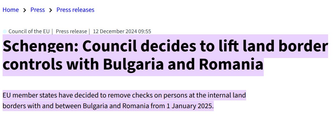 Паспортный контроль для граждан Румынии и Болгарии был отменен только в марте 2024 года и только для пересечения границы по воздуху и морю.
