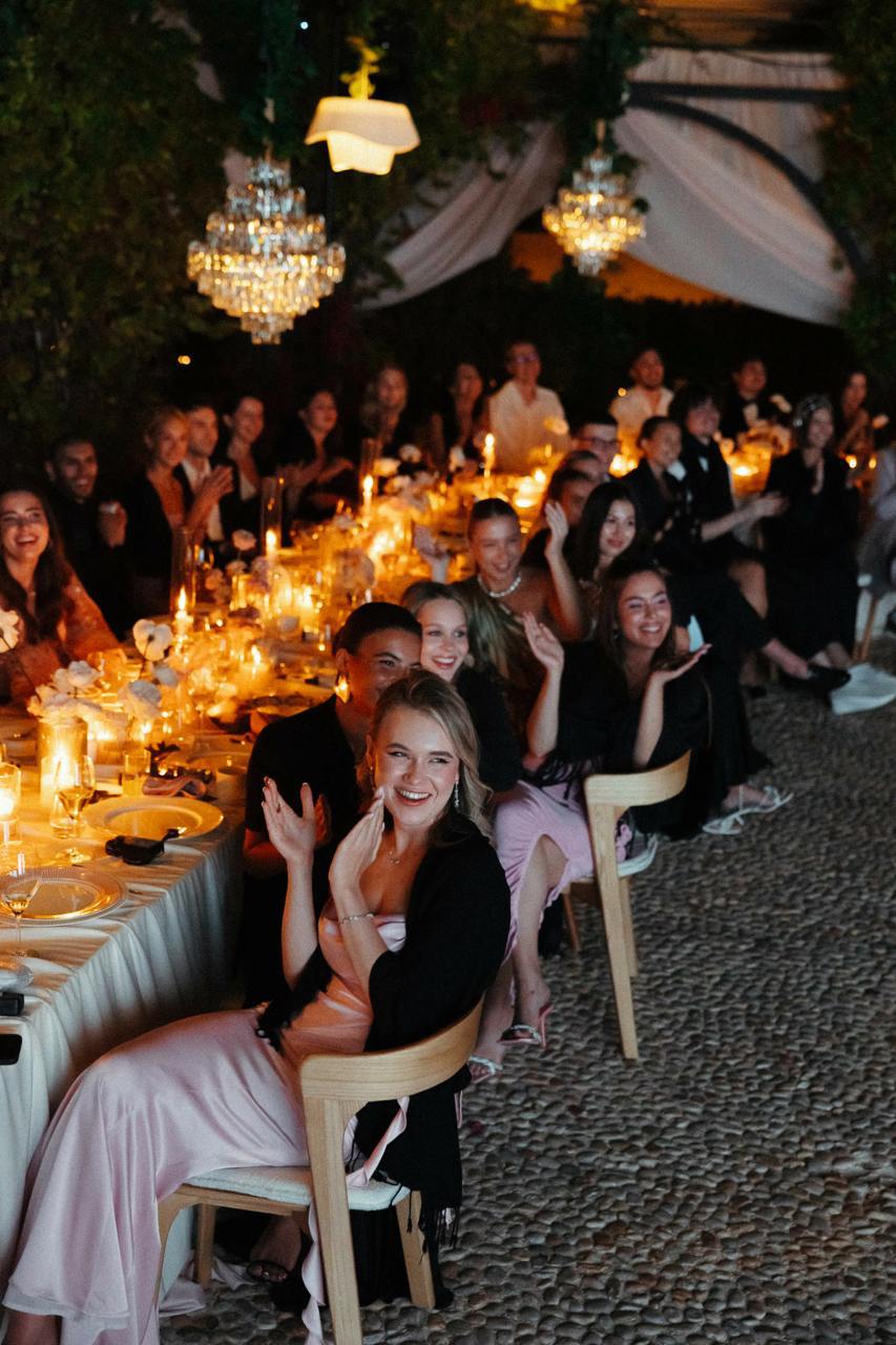 В элитном отеле Bvlgari Resort Dubai, где прошла свадьба, собрали около 80 гостей. По словам Натальи, "в Москве не успели бы организовать свадьбу в сезон", а Дубай удобен всем гостям, так как многие друзья жениха живут в Лондоне.