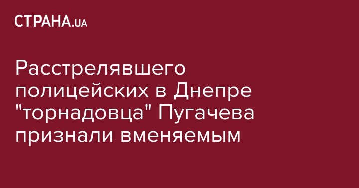 Прокуратура Днепропетровской области завершила ряд следственных экспертиз, по результатам которых Александр Пугачев, подозреваемый в убийстве двух полицейских в Днепре, признан вменяемым.