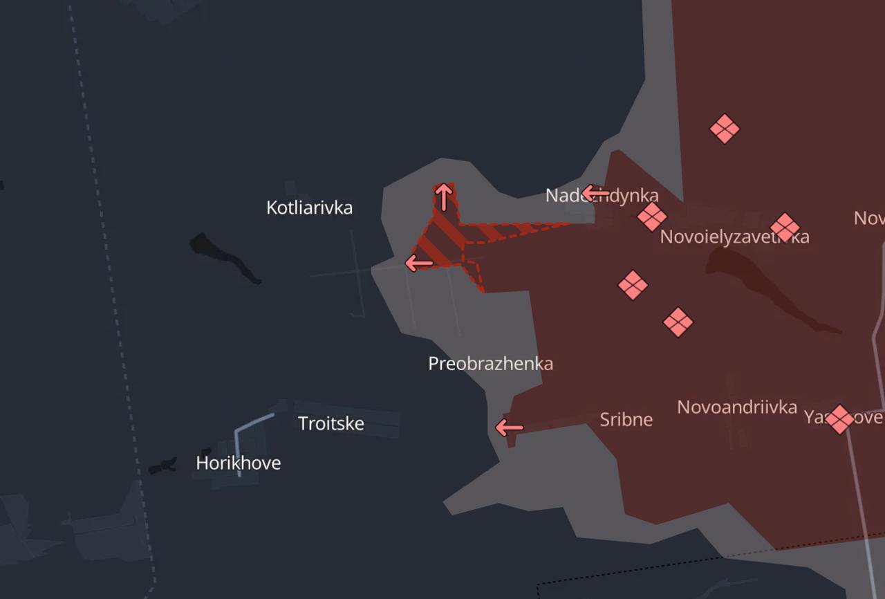 08:50 Российские войска за минувшие сутки снова продвинулись на участке фронта между Покровском и Торецком - в районе Калинового.