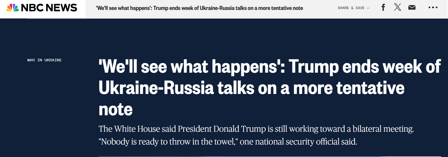 13:54 Ещё одно американское издание пишет, что недавний пост Трампа о том, что Украина, не атакуя Россию, победить в войне не может, является сигналом о том, что Украине придётся принять соглашение, в основном, на условиях России.