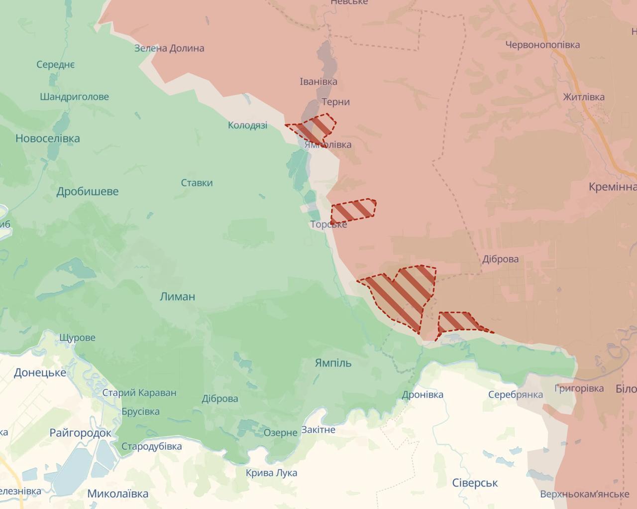 12:25 Российские войска снова продвинулись в Серебрянском лесничестве и в направлении Лимана - возле Торского и Ямполовки.