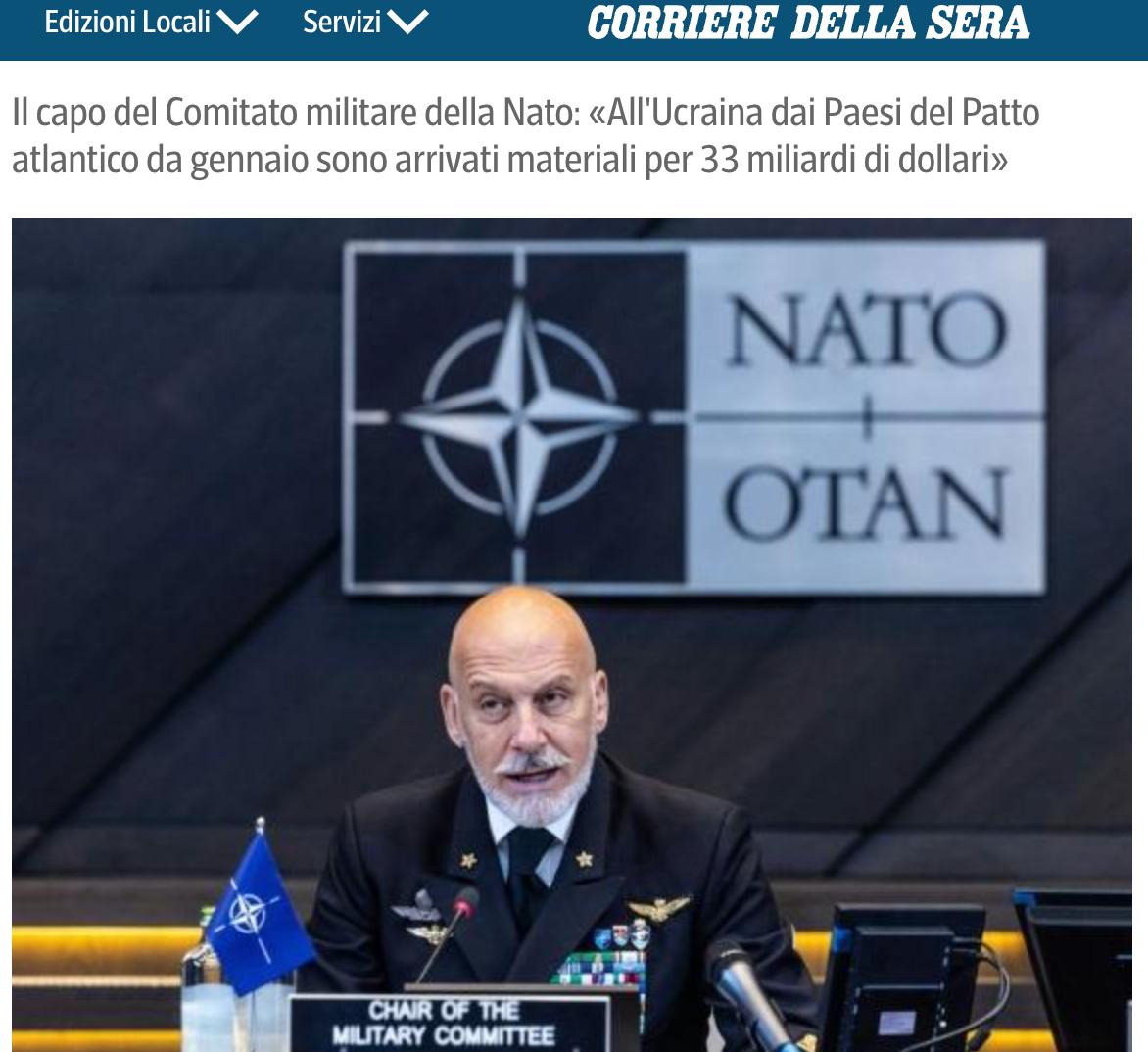 12:53 В этом году военная помощь Украине не увеличится и составит около 50 миллиардов долларов. Такие расчеты привел глава военного комитета НАТО Джузеппе Каво Драгоне.