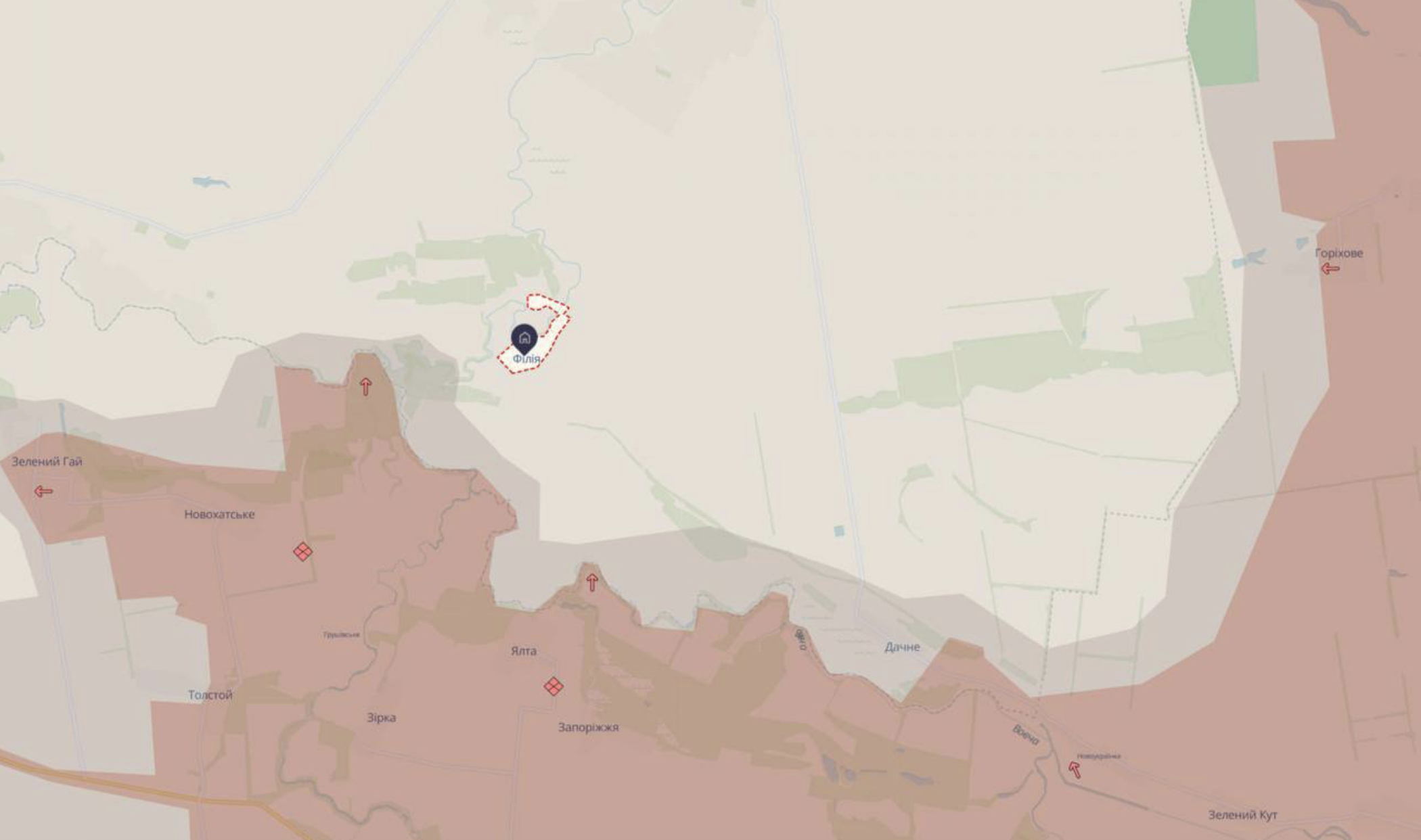 Зеленый Гай - село у границы Днепропетровской области, которое частично занято РФ, согласно карте Deep State. Оно находится возле Филии на Днепропетровщине, о захвате которой заявили сегодня в РФ.