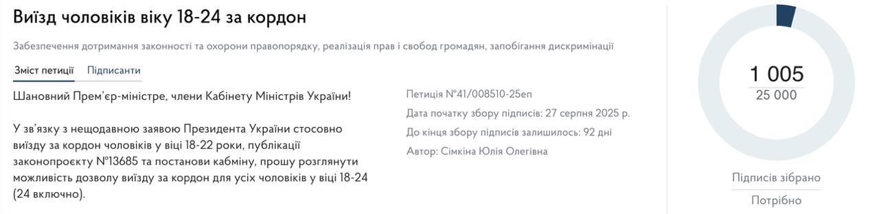 17.54 На сайте правительства зарегистрировали петицию с призывом разрешить выезд за границу также мужчинам 23-24 лет и 50-55 лет.