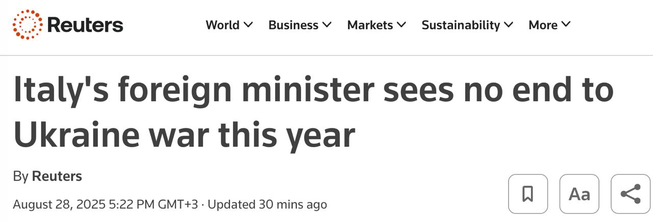20:36 Италия не будет направлять своих военных в Украину, но допускает участие в обеспечении гарантий безопасности "извне" и только после установления перемирия.