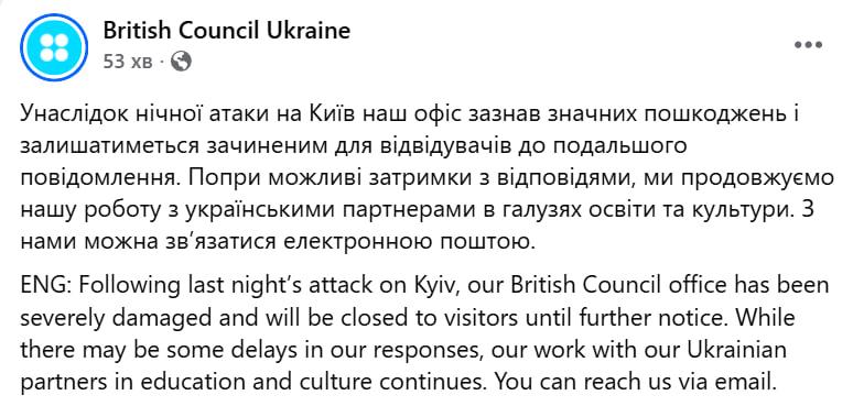 11:23 В Киеве поврежден офис Британского Совета, он закрылся.