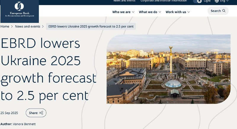 "Ожидается, что рост ВВП Украины замедлится до 2,5% в 2025 году на фоне высокой неопределённости, связанной с войной России против страны", – отметили в ЕБРР.