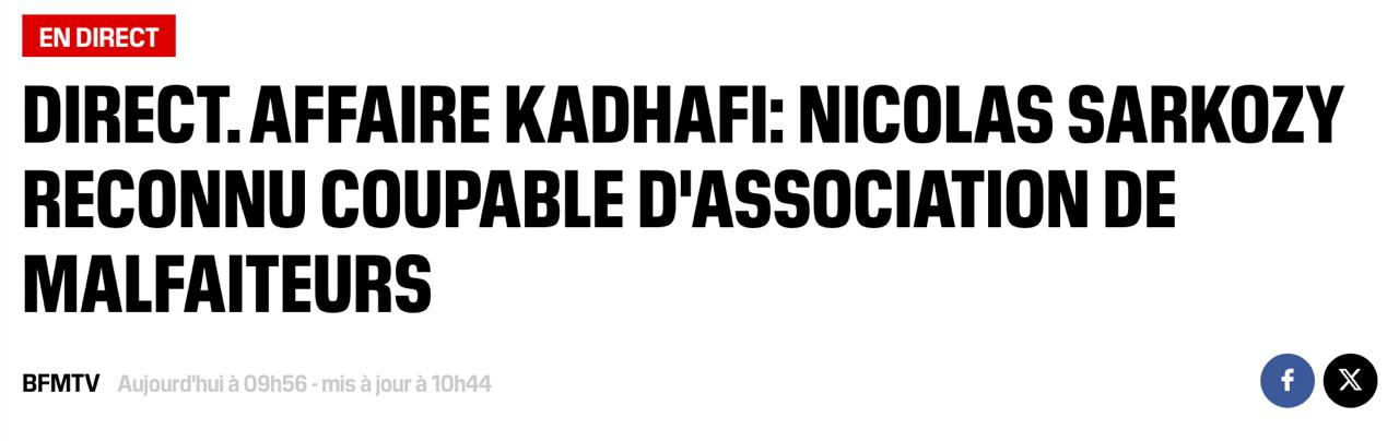 Во Франции Уголовный суд Парижа признал виновным 70-летнего экс-президента Николя Саркози по делу о финансировании его победной предвыборной компании 2007 года ливийским лидером Муаммаром Каддафи. Суд назначил Саркози пять лет лишения свободы с отсрочкой исполнения приговора и штраф в размере 100 тысяч евро.