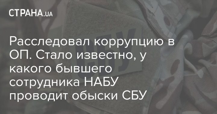 Расследовал коррупцию в ОП. Стало известно, у какого бывшего сотрудника НАБУ проводит обыски СБУ