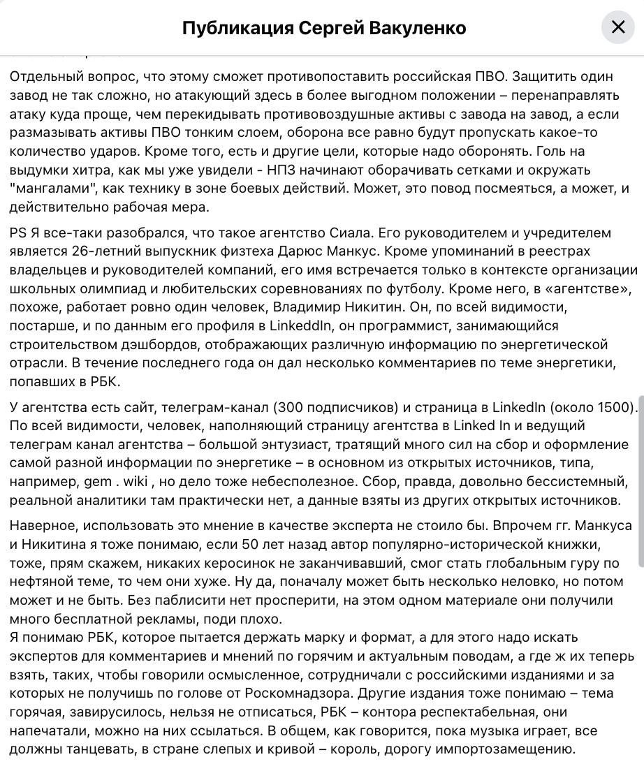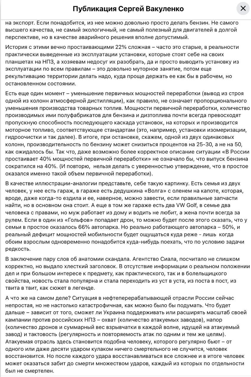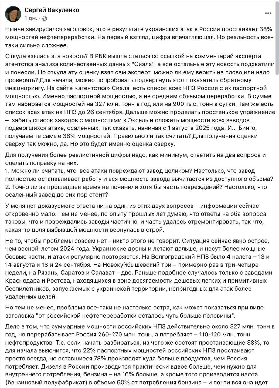 Вакуленко считает, что ситуация в России непростая, но не настолько катастрофическая, как можно подумать при виде заголовка "От российской нефтепереработки осталось чуть больше половины".
